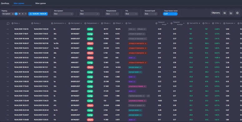 Функционал комментариев дополняет систему тегов, позволяя фиксировать субъективный контекст сделки: рыночные условия, эмоциональное состояние, ожидания и отклонения от плана.