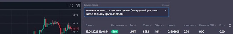 Комментарии сохраняются автоматически и формируют базу для последующего анализа. При накоплении достаточного количества данных это позволяет выявлять не только технические, но и поведенческие паттерны, влияющие на результат торговли.