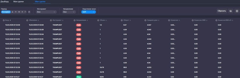 Раздел «Мои сделки Spot» на текущем этапе предоставляет базовый функционал отображения и фильтрации сделок, однако в дальнейшем планируется его развитие с учетом пользовательского фидбэка. Уже сейчас он может использоваться для сравнительного анализа спотовой и фьючерсной торговли.