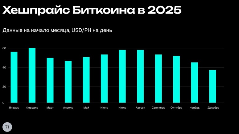 В России ситуация гораздо лучше — себестоимость майнинга варьируется от $39 000 до $59 000, в зависимости от стоимости электричества в регионе и издержках обслуживания. Поэтому на современных аппаратах майнинг окупался в течение всего 2025 года.